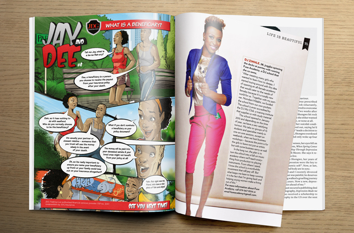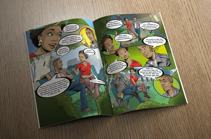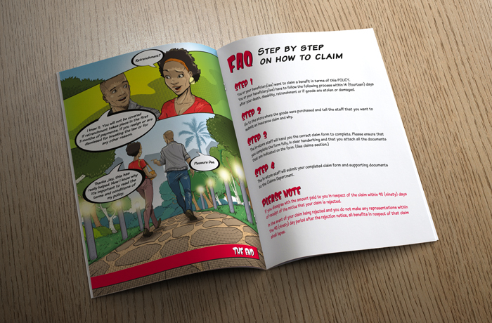 JDG Insurance Customer Education Graphic Novel JDG Insurance Customer Education Advertising SACC Literacy Programme j Dustin Slabber Art Direction j Kate Slabber Art Direction j Sean Fandam Copy Campaign Launched February 2013 < Back to JDG
